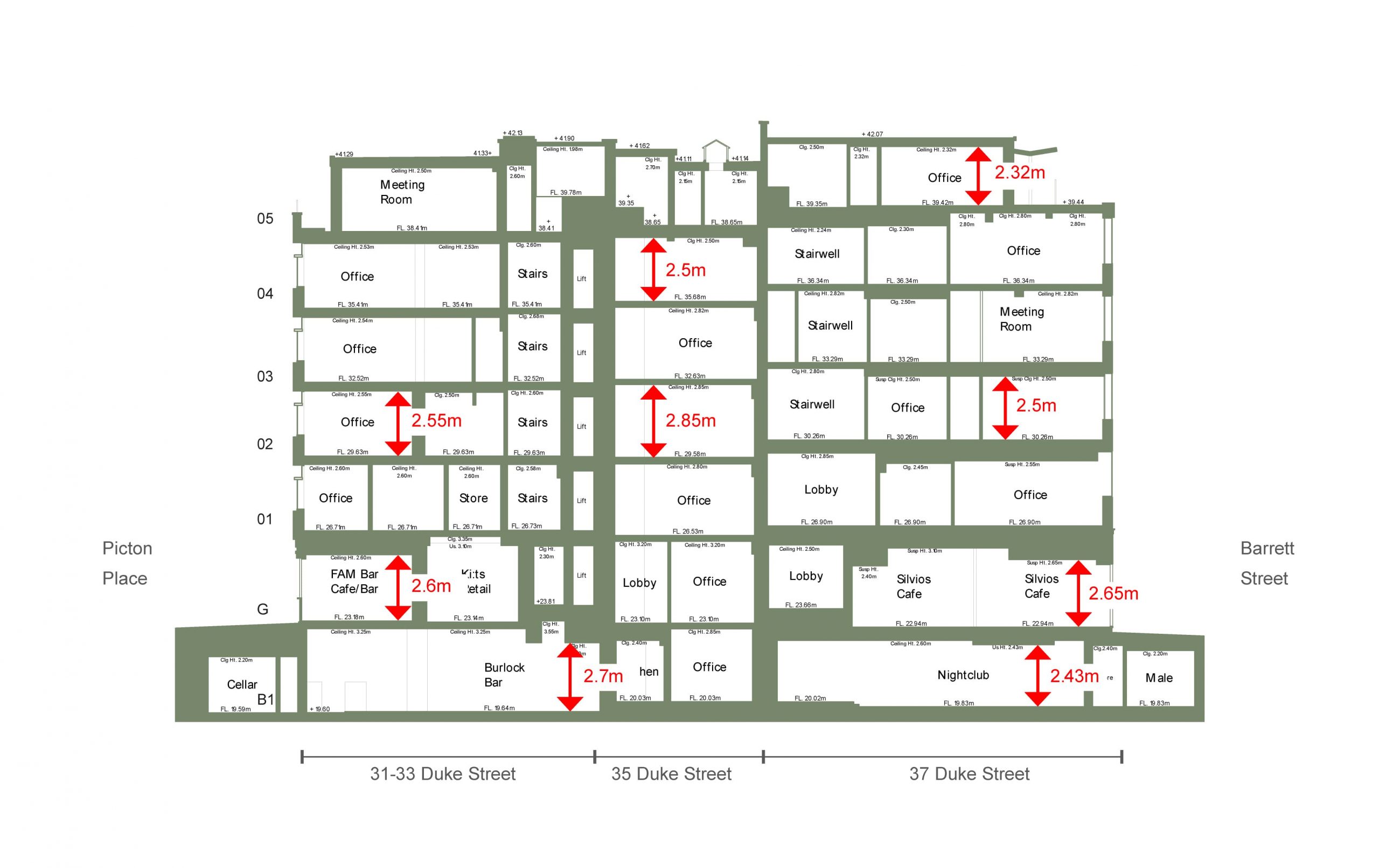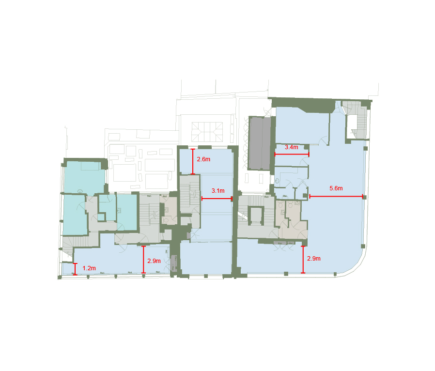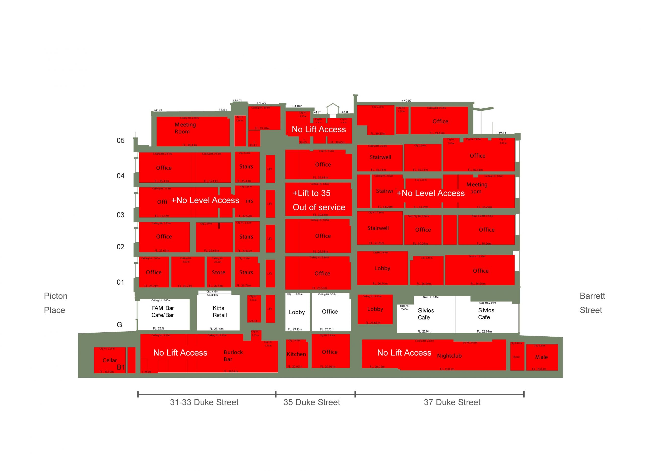 The current offices are inefficient, poorly lit, and fall short of modern workspace standards, limiting both their commercial value and usability. The layout is cramped and feels secondary in design, with rooms facing Duke Street particularly narrow at less than 3 metres deep.